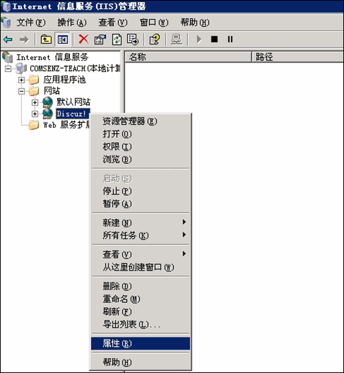 (1) 打開剛剛建立的網站屬性,如下圖所示: