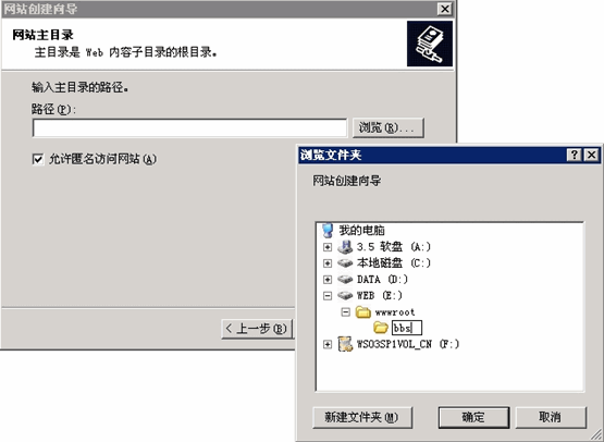 (4) 在網站分區中建立 wwwroot 以及下級站點文件夾 bbs。如下圖所示: