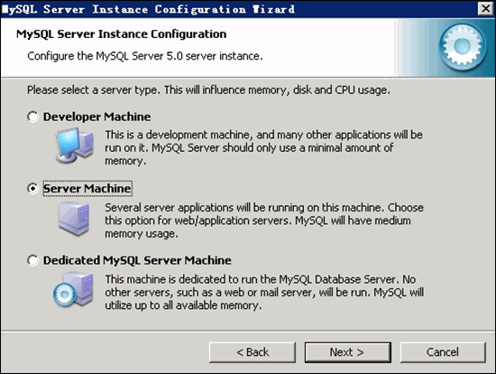 選擇 MySQL 運行模式:Server Machine 如下圖所示: