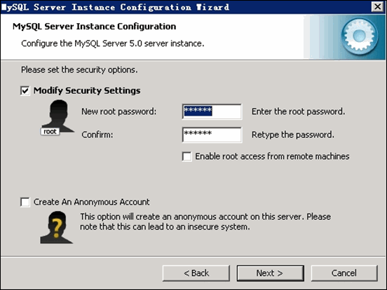 修改設定 root 用戶密碼,注意:不要啟動遠程連接模式! 如下圖所示: