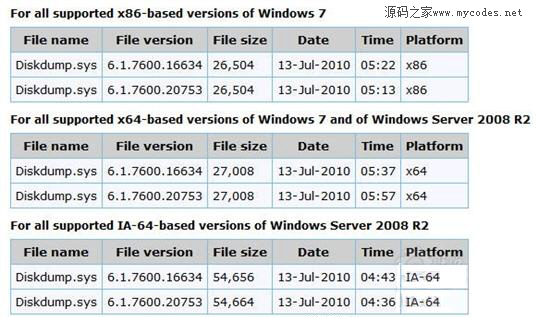 微軟此次發(fā)布的熱修復(fù)補(bǔ)丁編號為KB2249857,適用于Windows 7、Windows Server 2008 R2的各個版本,安裝后Diskdump.sys驅(qū)動文件的版本號會從6.1.7600.16634升級為6.1.7600.20753。