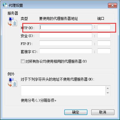 第七步:在HTTP后面設置服務器IP和端口就是設置HTTP的代理服務器。