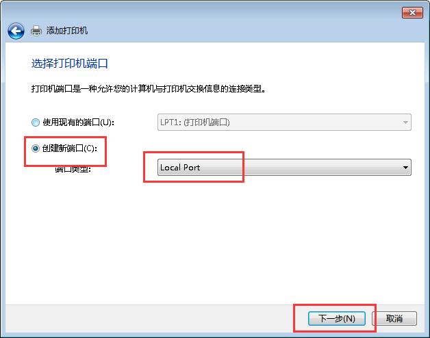 3、選擇“創建新端口”單選項,再從“端口類型”中選擇合適的項,如“LocalPort”項,單擊“下一步”;