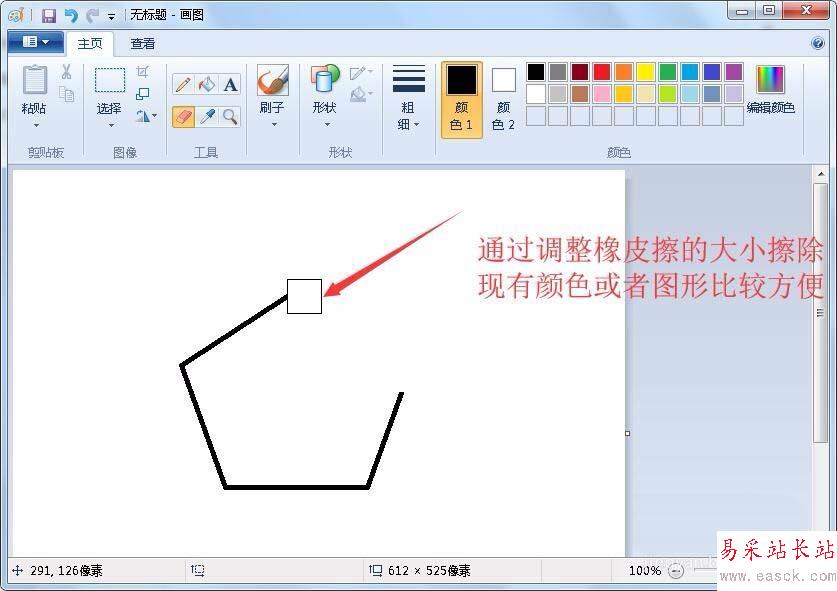 5、掌握橡皮擦形狀調整大小后,通過適當調整來擦除現有圖形或者顏色,擦除起來就會比較省力,且時間快速。
