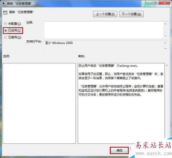 3、在彈出的屬性設(shè)置窗口中,我們只需點(diǎn)擊選擇“已啟用”單選框即可,然后按“確定”保存設(shè)置,如下圖所示: