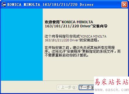 konica minolta 163打印機的Win7驅動,同時適用于konica minolta 161/181/211/220,僅支持win7系統這個驅動的安裝很簡單,下面的安裝教程是給不熟悉的朋友準備的1、下載解壓后,點擊install.exe進行驅動安裝