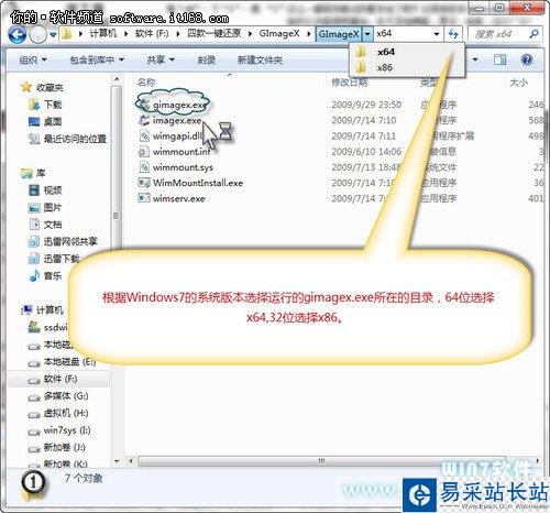 需要的工具叫做GimageX,http://www.survivalescaperooms.com/softs/81537.html 從這個網(wǎng)址下載到軟件,根據(jù)Win7的系統(tǒng)版本選擇運行的gimagex.exe的版本,64位選擇x64目錄下的,32位選擇x86目錄下的(如圖1)。