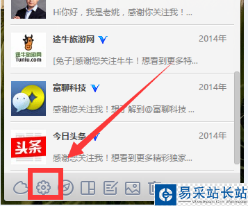 2、在打開的新浪微博窗口中,點擊“新浪微博”界面下面的設(shè)置按鈕,打開“系統(tǒng)設(shè)置”。