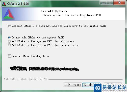 從http://www.cmake.org/cmake/resources/software.html上下載WWindows版本安裝包cmake-2.8.10.2-win32-x86.exe文件,雙擊一路默認安裝即可。