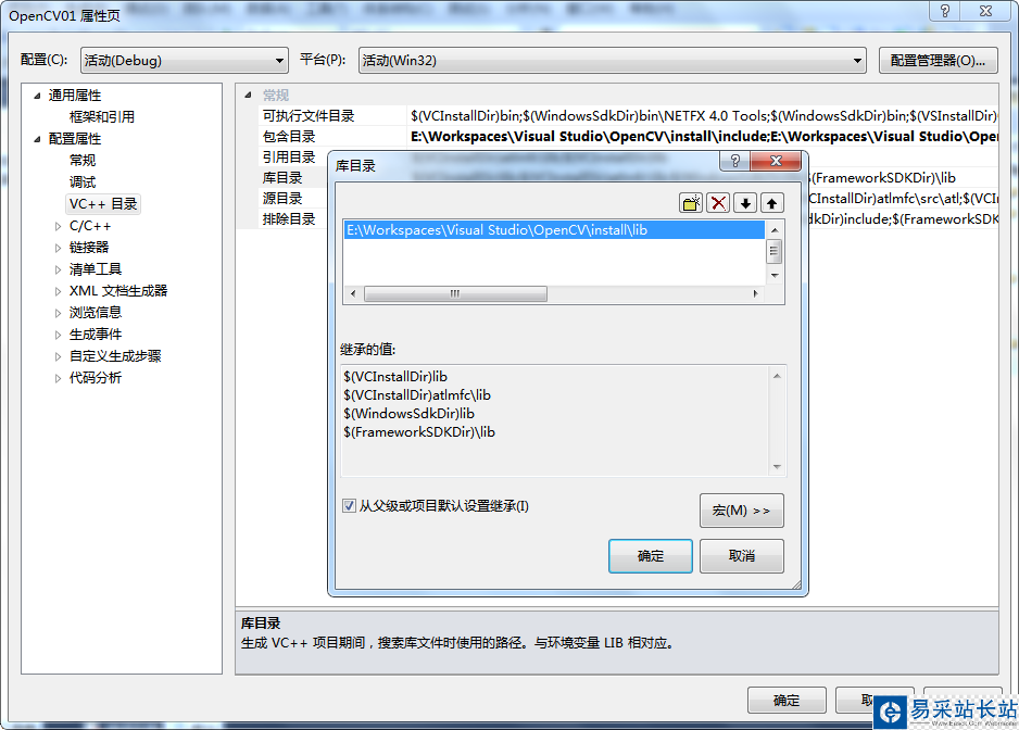 配置include路徑的作用是告訴VS從哪里查找OpenCV的頭文件,配置lib路徑的作用是告訴VS從哪里查找OpenCV的庫文件。