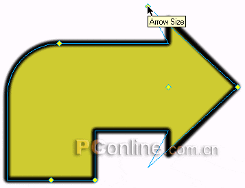 選中該點,會出現相應背景提示框:arrow tip。直接用鼠標拖動(只能向箭頭的左右方向拖動),就可以改變箭頭的大小了!請看下圖演示: