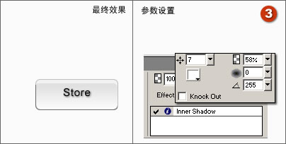 2.做出導(dǎo)航按鈕的高光,這是點睛之筆,一般在這一步效果就出來了。有兩種方實現(xiàn):一個用效果(effect)的內(nèi)陰影(inner shadow)參數(shù)和最終效果如圖: