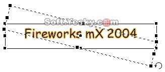 而當鼠標移到任意一個控制點的四個邊角附近時,指針會變為圓形箭頭,此時拖動該控制點進行移動,即可旋轉改變文字的方向,如圖5—07、5—08。此時改變縮放中心的位置所改變的則是旋轉點的中心位置。
