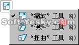 點選“縮放”工具后在文本框內會出現八個控制點和一個縮放的中心點,當鼠標移到控制點上時指針會變成雙向箭頭,此時拖動該控制點即可改變對象的形狀,如圖5—05、5—06。當按住alt鍵的同時拖動控制點時,對象則會以縮放點為中心,使對象產生對稱式的縮放變形。