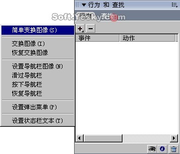 選中切片后,啟動“行為”面板,點擊“添加” 指令按鈕,從中選擇“簡單變換圖像”,如圖9—03。