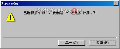 先在畫布上繪制或引入三個圖形對象,然后同時選中這些對象,并在任意一個對象上單擊右鍵,從彈出菜單中選擇“插入切片”。這時會彈出一個提示窗口,如圖9—07。
