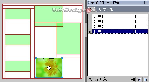 同樣的,我們在第3和第4幀中也分別引入用于“鸚鵡”和“鮮花”按鈕所要變換的圖像,然后都在圖像上點擊右鍵,選擇“插入切片”項。