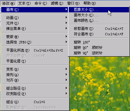 2.打開“修改”菜單,單擊“畫布”里的“圖象大小”。