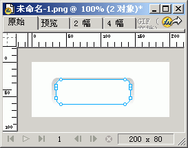 新建一個文件,背景色自定。使用圓角矩形工具,在編輯區繪制一個圓角矩形,矩形寬120象素,高40象素,矩形圓度為50。