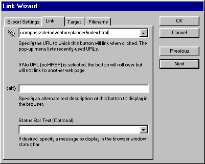 2,在link wizard (鏈接向導)上的link標簽上輸入鏈接地址。