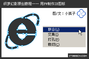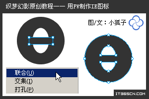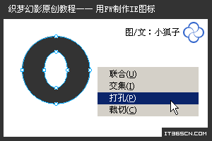 7、繪制如圖所示大小的一個圓形,按shift選中橢圓圖形,選擇“修改 組合路徑 打孔”命令,將橢圓環切去一部分。