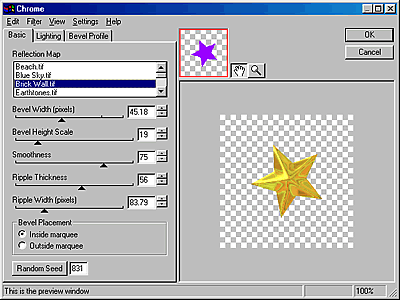這次要借助支持 fireworks 的著名外掛濾鏡 eye candy 4000.一樣從屬性欄右方添加效果(effects:+),調用的是鉻合金(chrome)濾鏡,具體設置見下圖鉻合金濾鏡效果面版。
