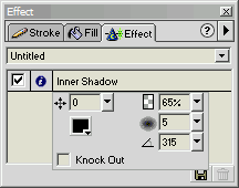 選中矩形圖形。打開效果面板并從下拉菜單中選擇>陰影與發光>內側陰影;照下圖所示選擇陰影參數;