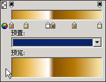 5、選中最上層的路徑,ctrl+j合并,設置線性填充,從左到右顏色值為:#b58218、#e7ba52、#ffffff、#845108、#b57908、#efdfa5