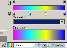 6、選中油漆桶工具,選擇填充模式為linear(漸變)顏色分別是ff00ff 00ffff ffff00 0000ff;