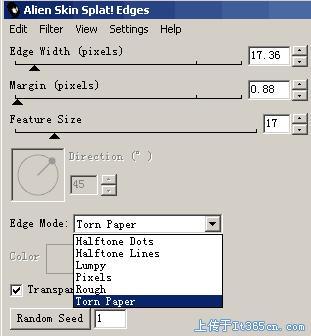 3、按需要調整參數,其中,edge mode(邊緣模式)為torn paper(撕紙)(注意:要選中transparentfill透明填充前面的復選框)