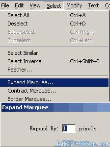 5、選擇select -> expand marquee... 擴展選區,輸入擴展1pixels,按“ok”;