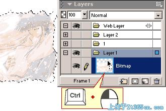 4、按住ctrl的同時,在layer(層)面板上左擊這張位圖,將位圖轉化為選區;