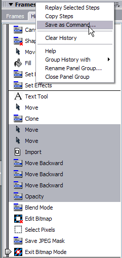 只需要在歷史記錄面版選擇整套步驟并回放或存成可再使用的命令即可。