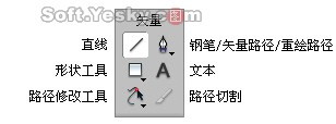 位圖區的工具介紹完了下面接著來介紹矢量區的主要工具,如圖2—29。