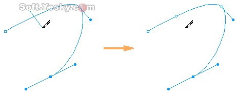 “更改區域形狀” 工具:使用時,該工具的指針是兩個同心圓,只有處于這兩個同心圓范圍內的路徑才會被修改。
