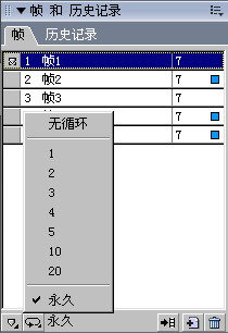 按鈕,可以添加或刪除被選中的幀。而在“幀”面板左下角的“循環”