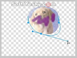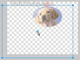 然后同時選中選中兩個對象(按ctrl+a鍵),使用菜單欄上的“修改—蒙版—組合為蒙版”命令,兩個對象就被組合為蒙版圖形了。用鼠標拖動蒙版圖形的藍色中心點即可移動下層的被蒙版對象(小狗圖),效果如圖4—18。