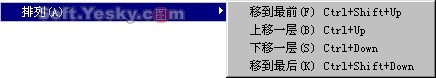 同一層的不同對象在工作區上是有上下的排列順序的,對于對象的上下排列順序可使用菜單欄中“修改—排列”下的命令進行調整,如圖3—30所示。