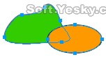 聯合:聯合是將幾個圖形對象結合成一個圖形對象的操作,新的圖形對象輪廓由被聯合的圖形對象邊界組成。如圖3—18、3—19所示,我們依次畫了綠色和紅色兩個圖形對象。同時選中兩對象后使用“聯合”命令。