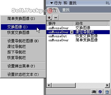 為 “切片”或“熱點”所添加的全部指令都保存在“行為”面板中。同時,點擊“行為”面板上的“添加” 或“刪除” 按鈕也可以為切片、熱點添加或刪除相關的行為指令,如圖10—10。