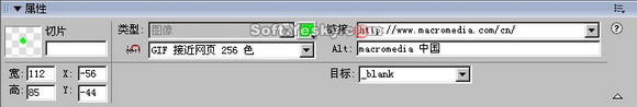 在該多邊形按鈕鏈接切片的屬性框中,可以進一步為該按鈕設置鏈接目標和按鈕圖像的色彩輸出模式等,如圖8—13。