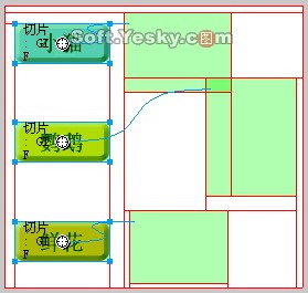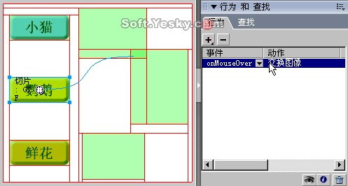 設置完成后點擊“確定”按鈕即可回到工作區。此時,“小貓”按鈕的切片和它所要交換的圖形切片間多了一條曲線。它表明這兩個區域已建立了鏈接關系,如圖9—16。