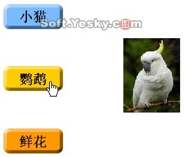 用同樣的方法為“鸚鵡”和“鮮花”按鈕在“交換圖像”對話框中設置不同的交換圖像。三個按鈕切片設置完成后如圖9—17。