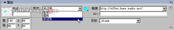 鏈接區(qū)的變形:對于各種形狀的圖形可為其選擇不同的“切片”或“熱點(diǎn)”工具,為圖象劃分出所需的切片或熱點(diǎn)區(qū)域。同時也可以使用各種“變形”工具對該區(qū)域進(jìn)行變形處理,如圖10—02。