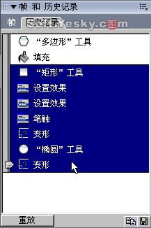 按鈕,以恢復上一步或前一步的操作。但當所要撤消或重做的次數較多時,就可以直接在“歷史記錄”面板里點擊左側的箭頭滑塊,從而返回到想要的那一步操作。如圖11—11。