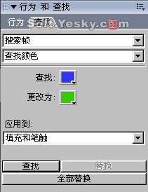 在“查找”右邊的顏色預(yù)覽窗中選擇所要查找的色彩,然后在“更改為”右邊的顏色預(yù)覽窗選擇一種用來(lái)替換新的顏色。當(dāng)點(diǎn)擊下方的“查找”按鈕時(shí),只會(huì)把“查找”右邊顏色預(yù)覽窗的色彩找出來(lái),而點(diǎn)擊“替換”或“全部替換”時(shí),則會(huì)將查找到的色彩進(jìn)行更換。