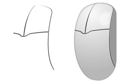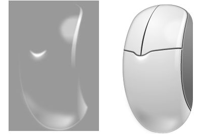3.鼠標的凹槽,路徑采用兩個鼠標表面路徑錯位打孔操作得到,使用白色投影表現凹槽的亮邊緣
