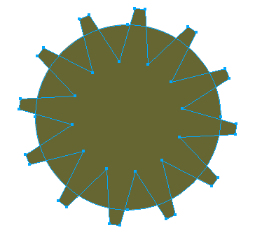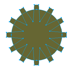 5、 再用橢圓形工具畫一個正圓,和圖1中的對象作modify>combine>crop處理,對圖2、圖3的對象作union處理。得到最終的齒輪效果。