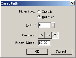 2、 使用菜單命令modify>alter path>inset path插入路徑。insert path的對話窗口如下圖所示,通過設置這些參數會使路徑有些奇妙的變化。