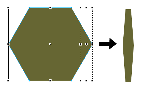 2、 使用工具面板中的scale縮放工具,此時被選擇的六邊形就會被一個有九個點的實線框所包圍,點擊實線框左邊的中間一個點并向右移動,如下圖所示,壓縮六邊形的寬度。并用指針工具把居于畫布右邊的被壓縮后的六邊形移到畫布中間。